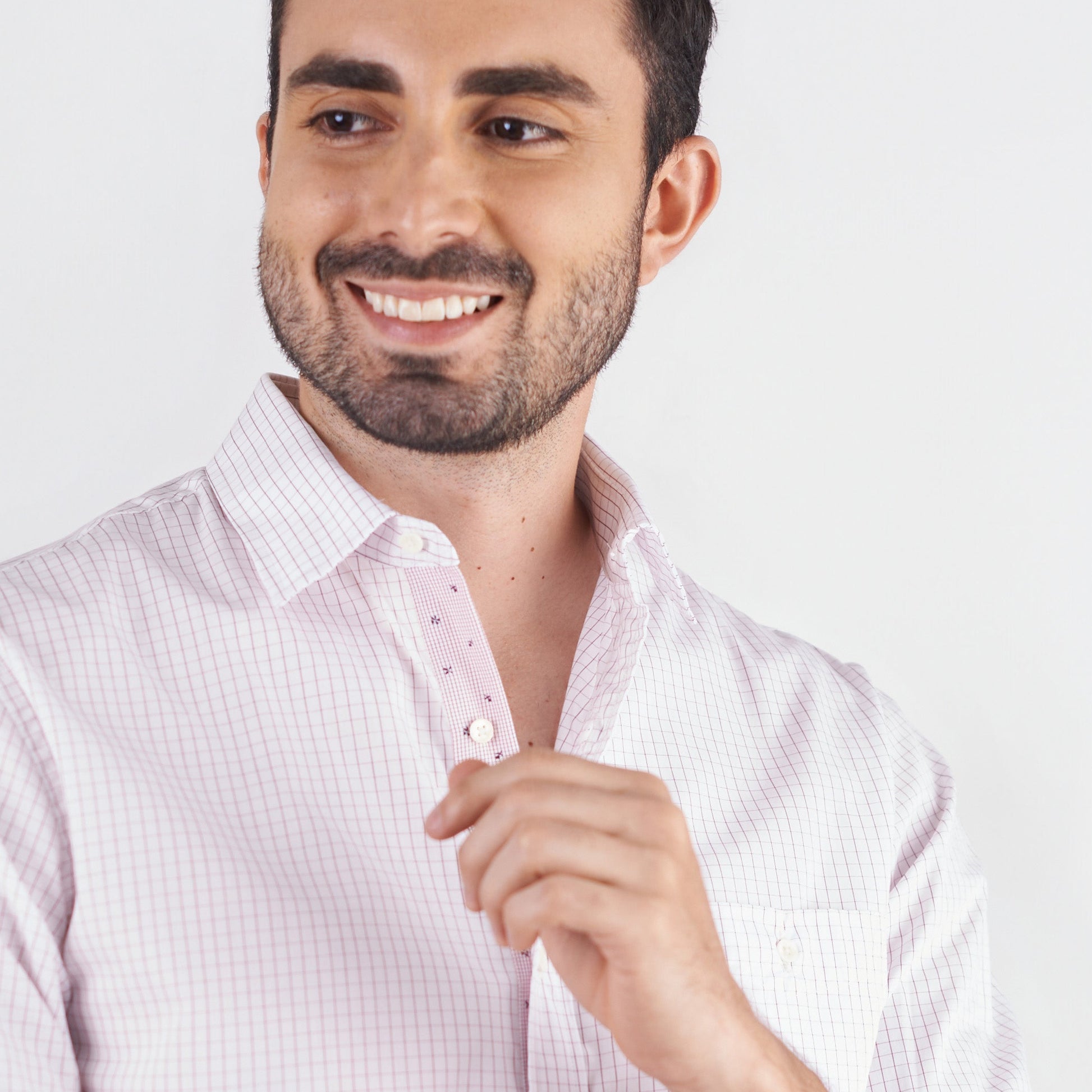 Camisa casual, regular fit, cuello con varilla interna, manga larga, 1 bolsillo con botón, diseño a cuadros. 100% algodón.